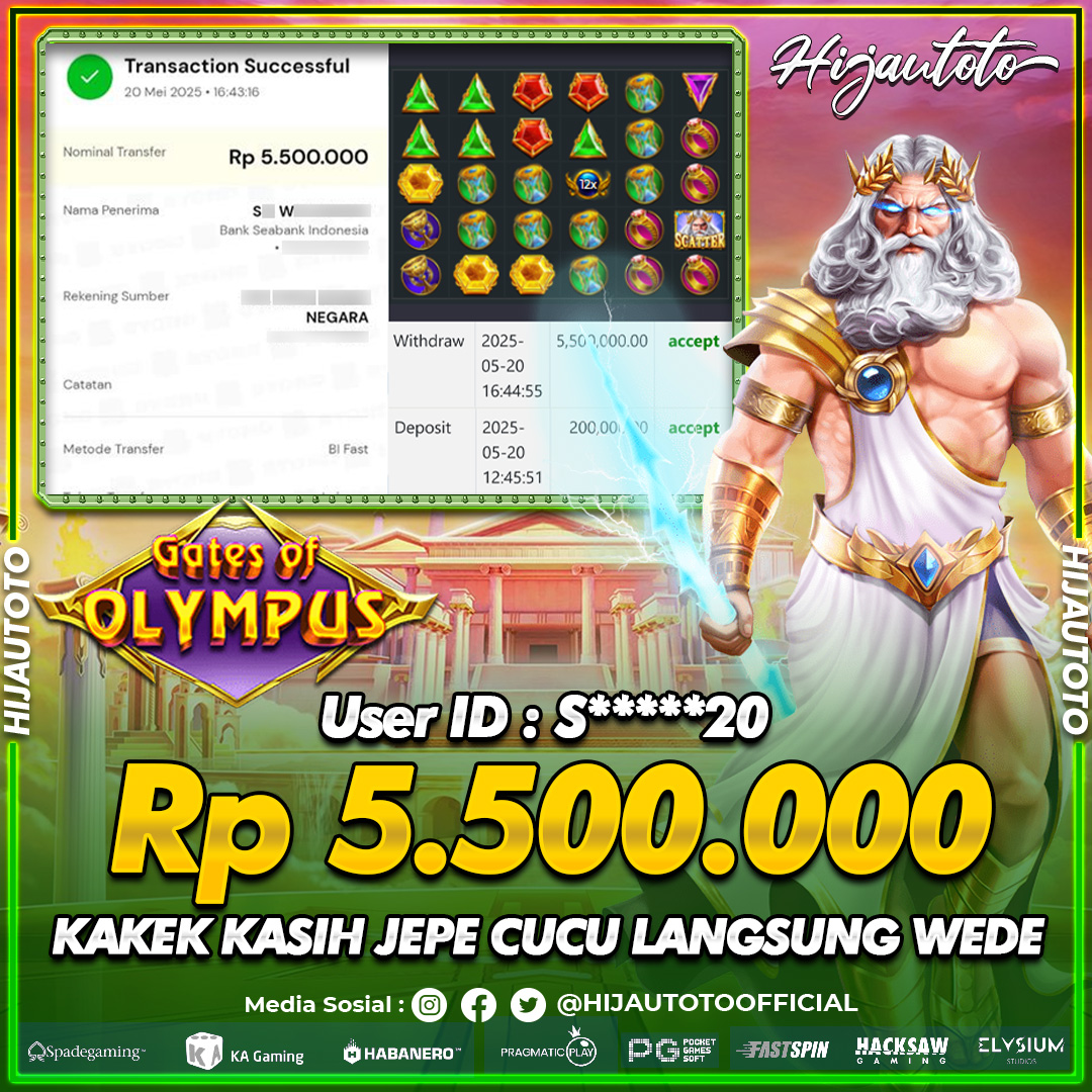 Kemenangan Slot Hijautoto 20 Mei 2025