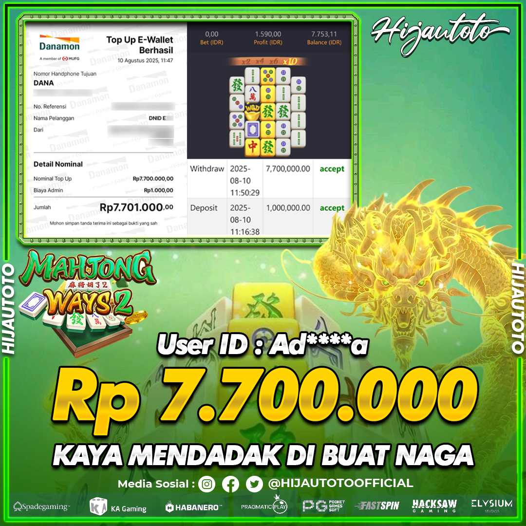 Kemenangan Slot Hijautoto 10 Agustus 2025