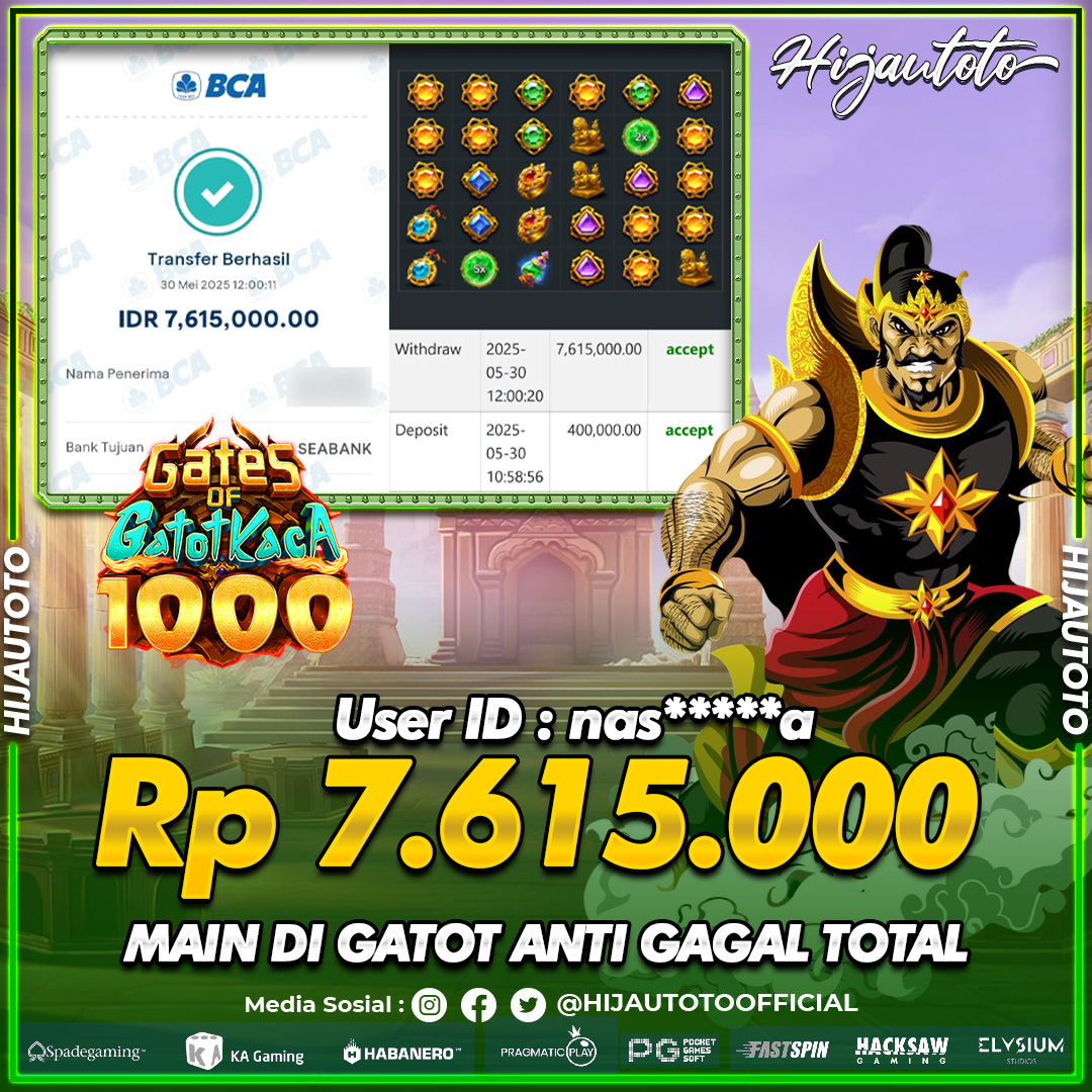 Kemenangan Slot Hijautoto 30 Mei 2025 Main Di Gatot Anti Gagal Total